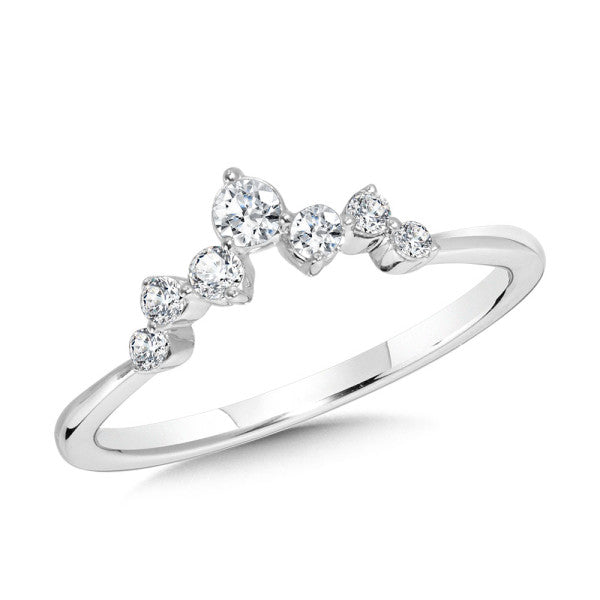 14K White Gold Scattered & Graduating Prong-Set Diamond Chevron Band