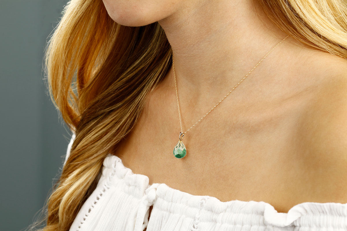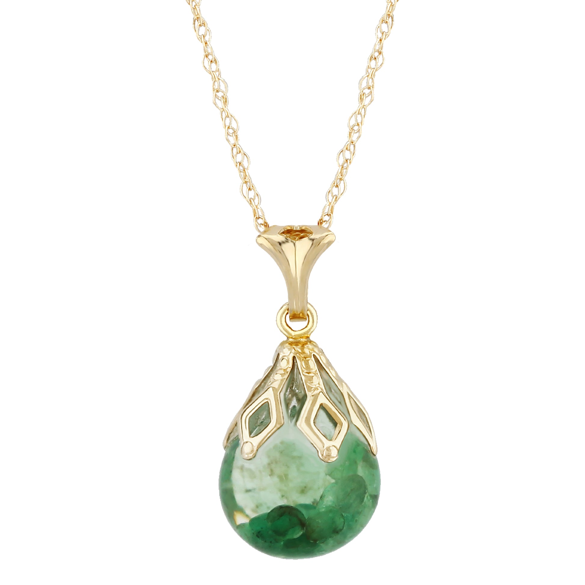 14K Yellow Gold 10mm Floating Emerald Necklace with 18in Chain