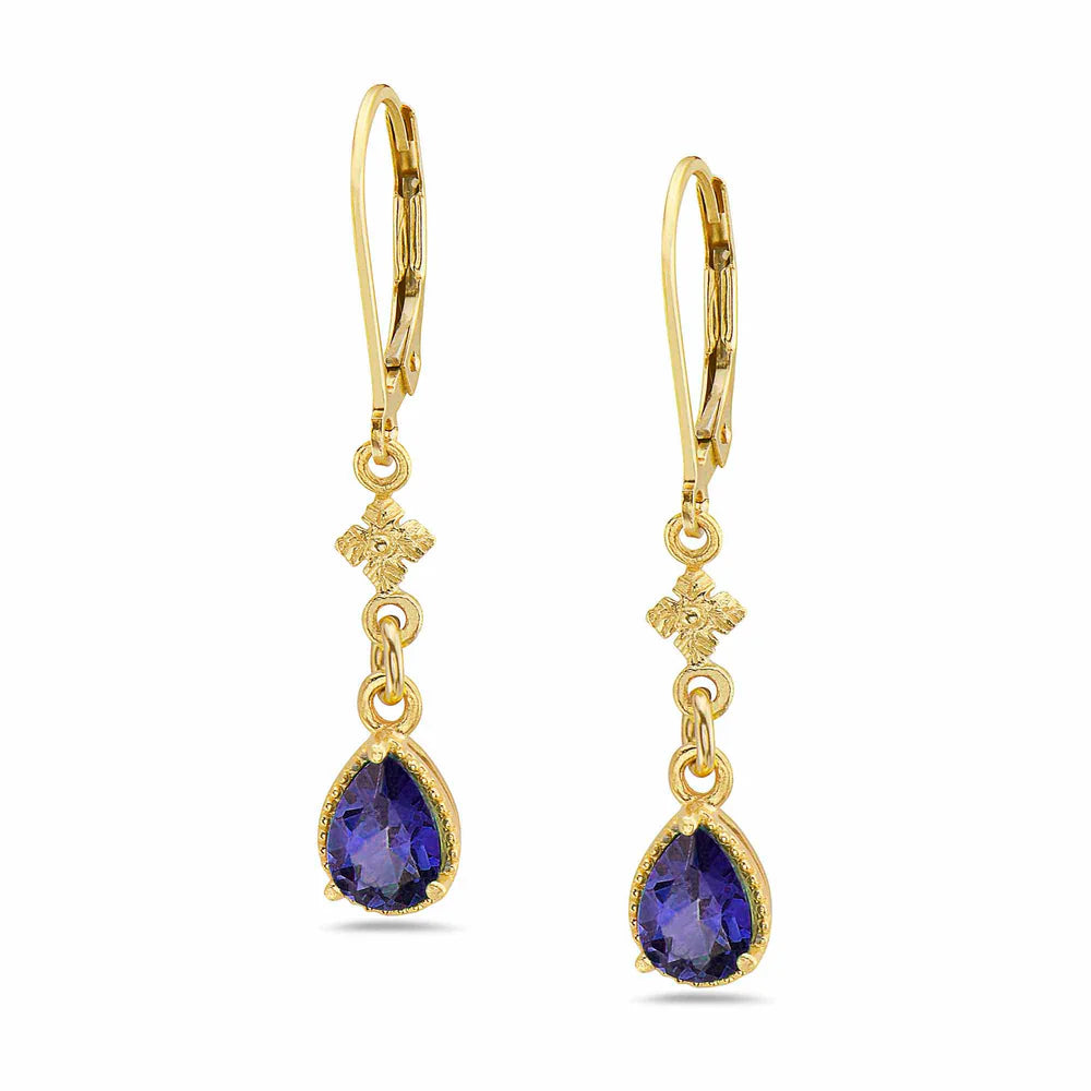 Petite Flower Earrings with Iolite Teardrops