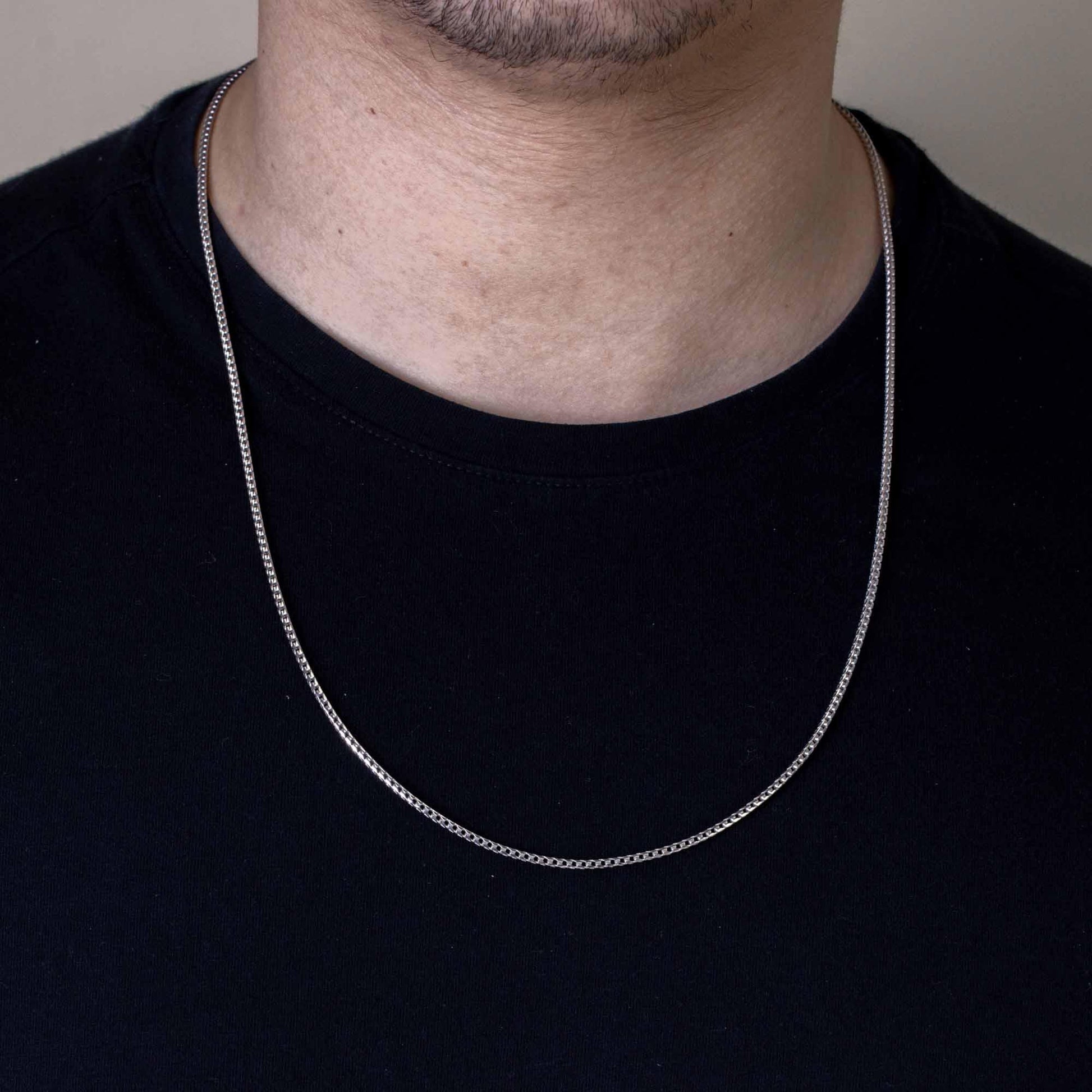 Crafted from high-quality 925 sterling silver and finished with rhodium plating, this Franco 230 chain is a stunning addition to your collection. The 2.3mm width adds a touch of elegance to any outfit. Durable, stylish, and versatile, perfect for everyday wear.